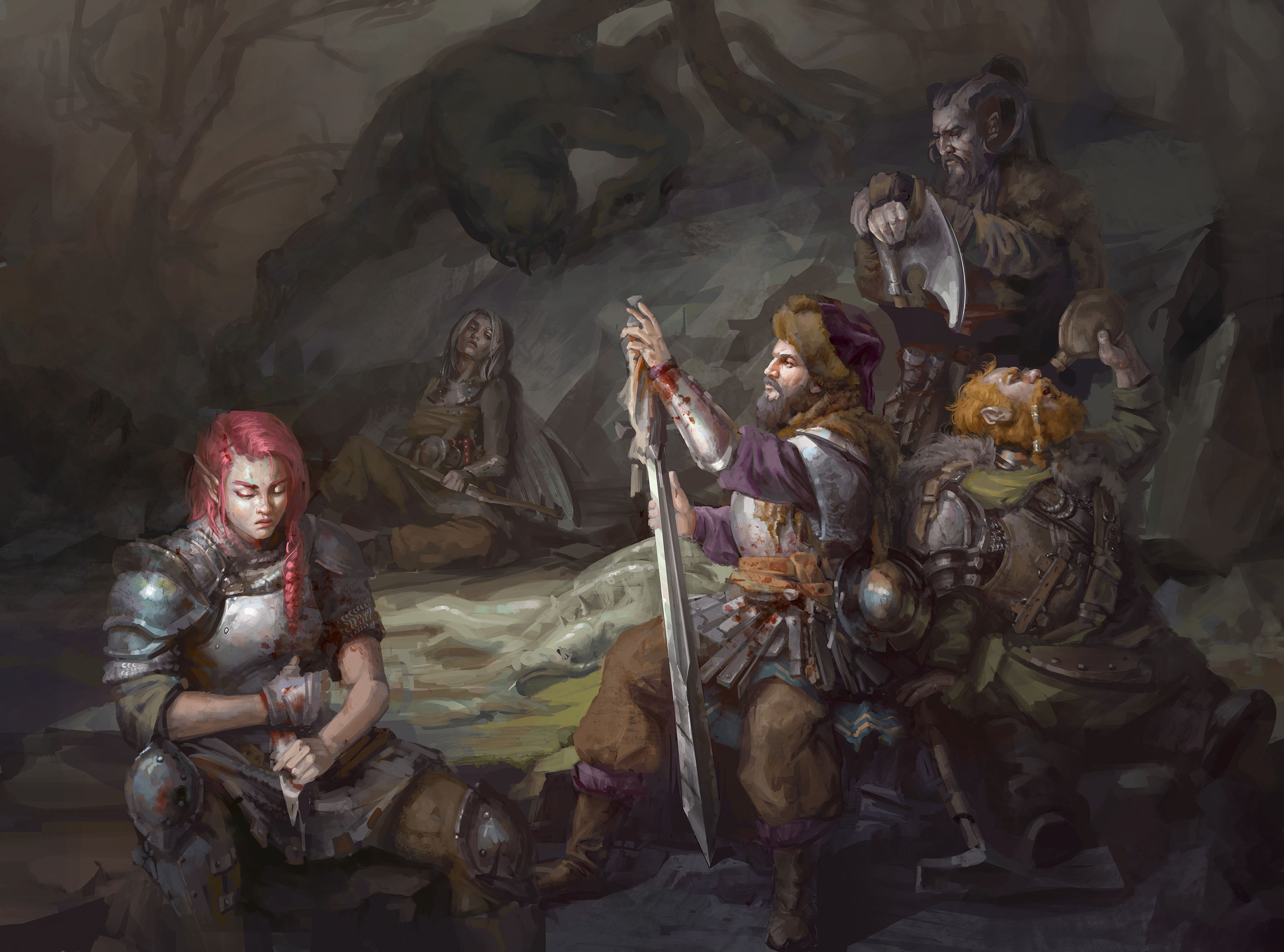 Combat requires the characters to work together as a party and support each other. Exposing a gap in your defenses to press an offensive invites risk. Focused and concerted efforts produce the best results.